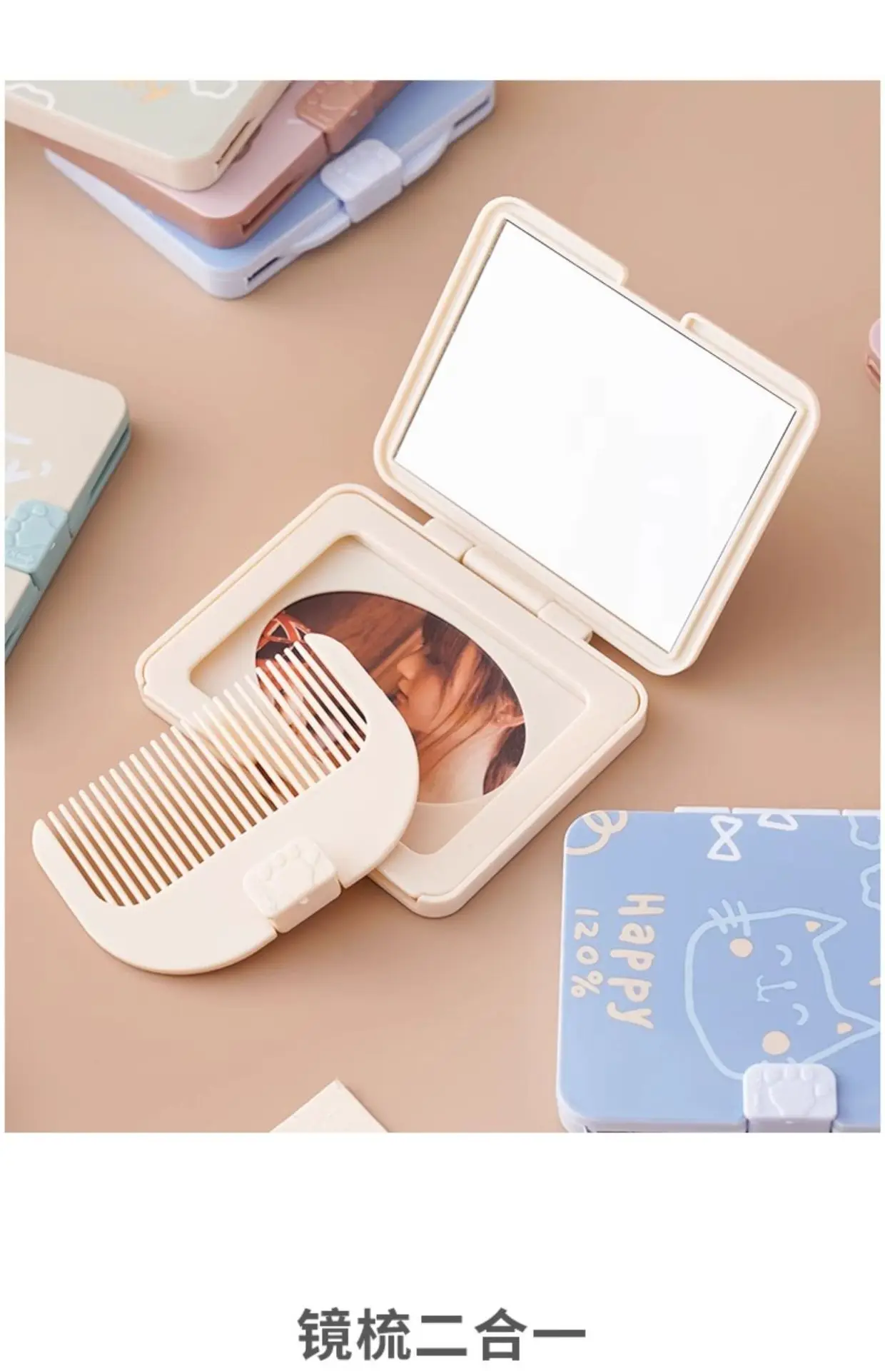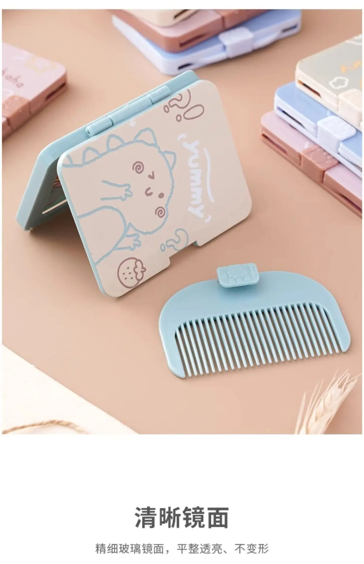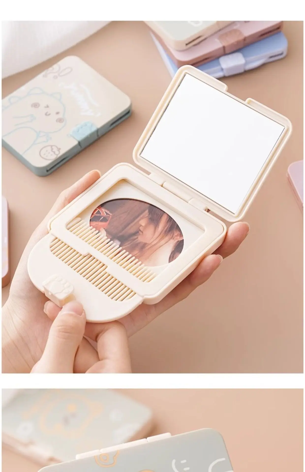 Cute Cartoon Small Outdoor Traveling Hairdressing Mirror Comb